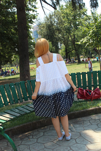 Nese per te gjithe e diela eshte pushim,ndodh qe nje here ne 20 vjet te marresh vesh qe duhet te shkosh ne pune edhe te dielen. Dhe ne kete rast duhet te zgjedhesh nje outfit si per dite OFF dhe ku ka me mire se nje OFF shouder Dress i lehteeee me efekt ombre qe me ndihme te zotit do zhduket nga kokat e femrave dhe te shfaqet ne veshje si fustani im.Topat vetem i shtojne lezetin dhe afermendsh qe duhej kombinuar me espadrilles me vija bardhe e blu,pasi tashme e mesuam qe ku ka topa mund te rrine fare mire dhe vijat.